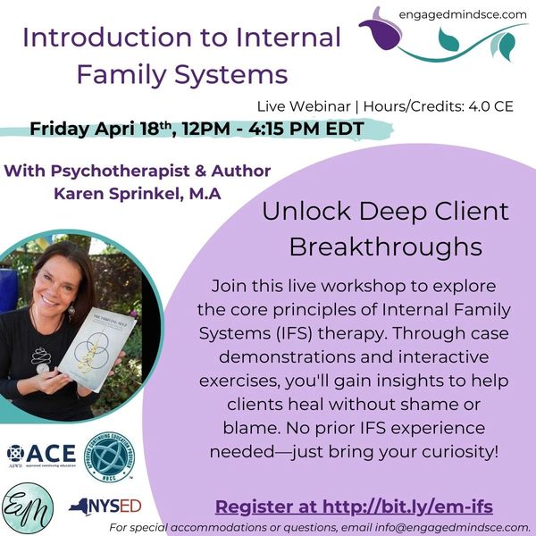 Unlock the power of Internal Family Systems (IFS) therapy in our dynamic workshop! Gain a solid understanding of IFS's foundational theories and discover how to navigate the complexities of client behaviors.